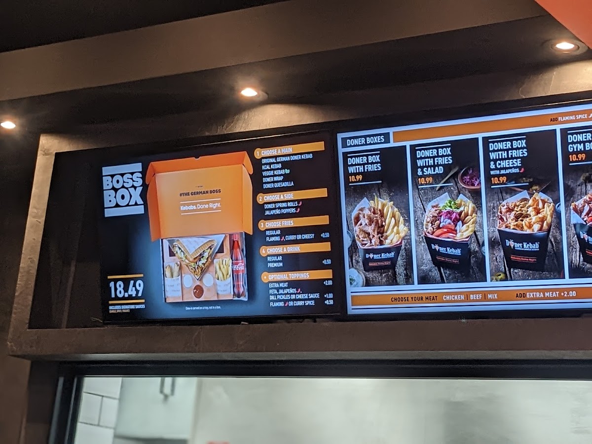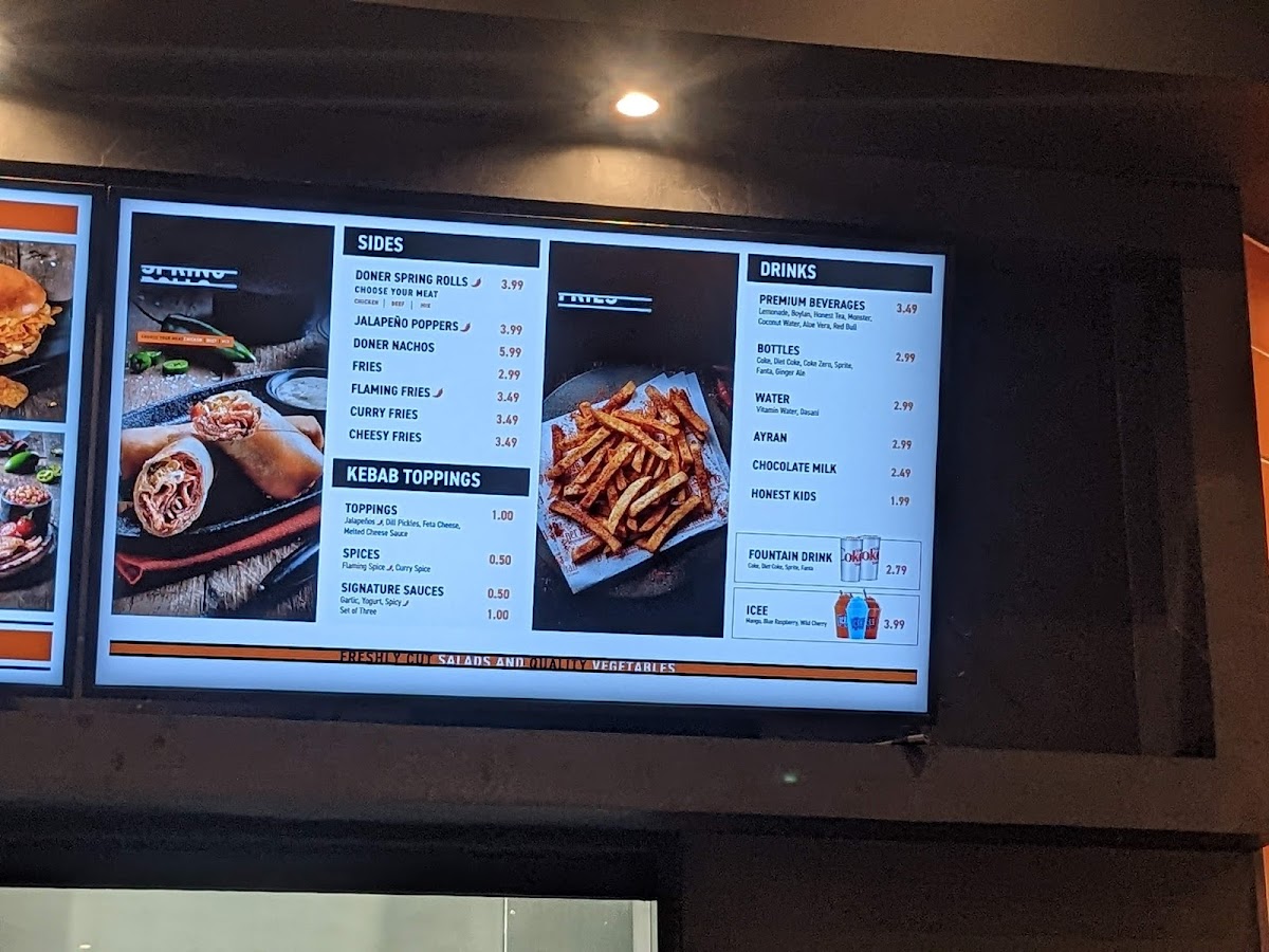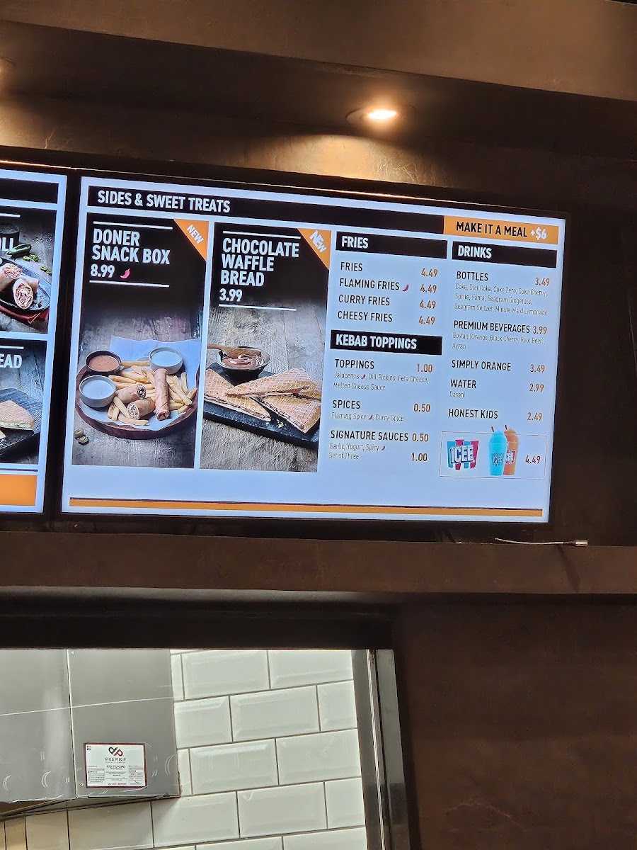 A choice of our original German doner kebab, kcal kebab, durum, or quesadilla served with a portion of our doner spring rolls or jalapeno poppers a side of fries, 3 signature sauces, and a beverage. Go on – be the boss.